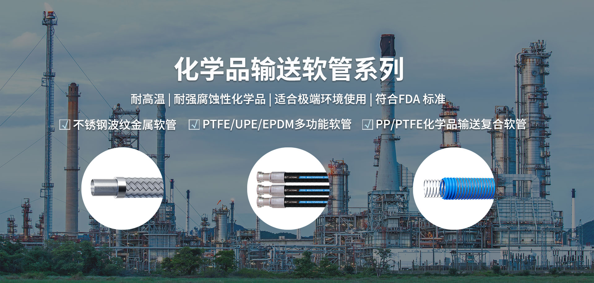 化學(xué)品輸送軟管適用于輸送多種腐蝕性物質(zhì)如酸性及堿性溶劑等。其超強(qiáng)耐腐蝕的特性使其成為石油化工、危險(xiǎn)液體運(yùn)輸?shù)刃袠I(yè)的品質(zhì)之選。